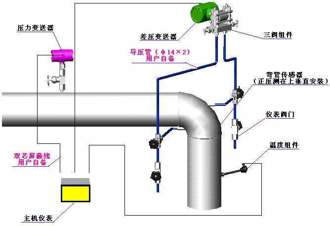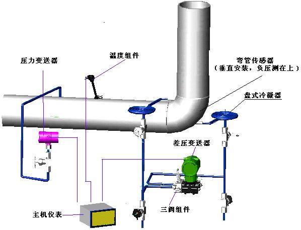 1. 測量煤氣、空氣等彎管流量計係統構成