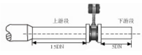 對於小口徑大流量(liàng),擴管安裝,同(tóng)時保證(zhèng)流量計的前直管段≥15D,後直管段≥5D