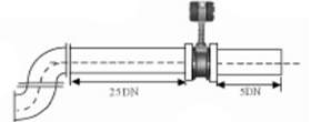 如(rú)果流量計的前端有兩個90°彎頭,要(yào)保證流(liú)量計(jì)的前直管段≥25D,後直管段≥5D