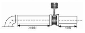 如果流量計的前端有兩(liǎng)個90°彎(wān)頭,要保證流量計的前直管(guǎn)段≥20D,後直管段≥5D